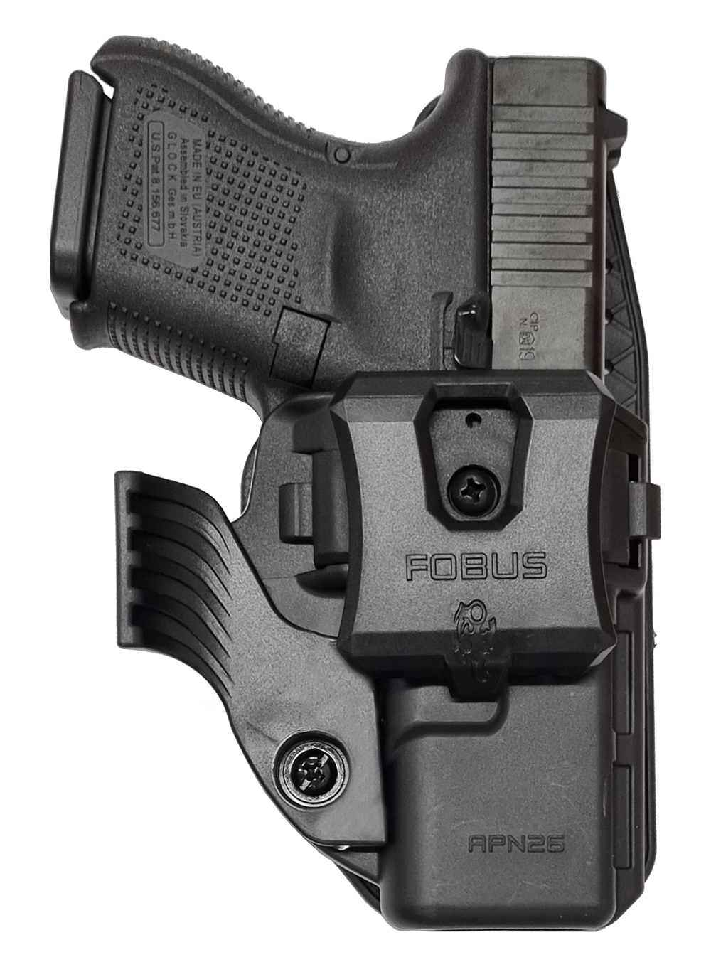 Holster Material: a mixture of mold-injected Polymers. Passive retention with adjustment screw: Fobus passive retention system acts like a spring on the trigger guard area and holds the gun firmly in place.