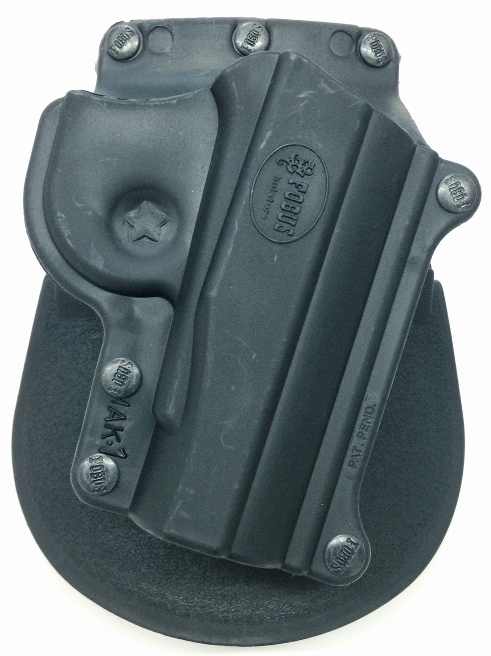 Tighten your belt. Place the holster on your hip and make sure the paddle is pushed all the way down on your belt. Draw fast and decisive, in an upwards motion as if you were in a real critical situation. The holster offers an adjustment screw for a more accurate retention pressure and personal preference. A silicone spray can also be used at the holster's trigger guard area, to lower the level of retention.