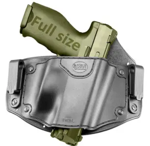Tighten your belt to a point where you can feel retention when holstering, but the pistol can still be holstered without hitting the holster shell. Important: IWBL is a?universal holster for large-size pistols. It is not designed for a specific pistol but for multiple pistols and does not have a standard passive retention mechanism holding the pistol. Retention is achieved by pressure of the belt on the holster when on your body; therefore, please refrain from inverting the holster when not on you. Your pistol will fall out.