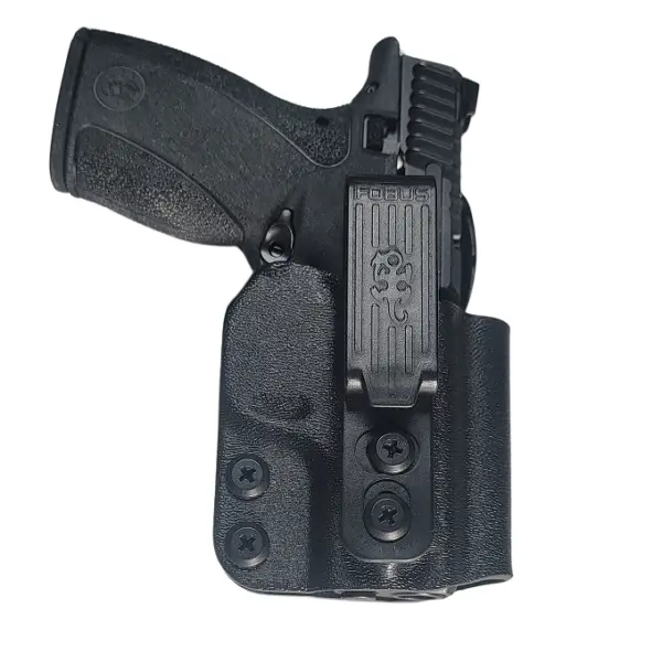 Tighten your belt. Place the holster on your hip and make sure the paddle/belt clip is pushed all the way down on your belt. Draw fast and decisive, in an upwards motion as if you were in a real critical situation. The holster offers an adjustment screw for a more accurate retention pressure and personal preference.