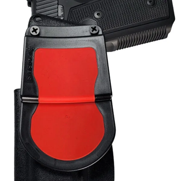 Tighten your belt. Place the holster on your hip and make sure the paddle/belt clip, is pushed all the way down on your belt. Draw fast and decisive, in an upwards motion as if you were in a real critical situation. The holster offers an adjustment screw for a more accurate retention pressure and personal preference.
