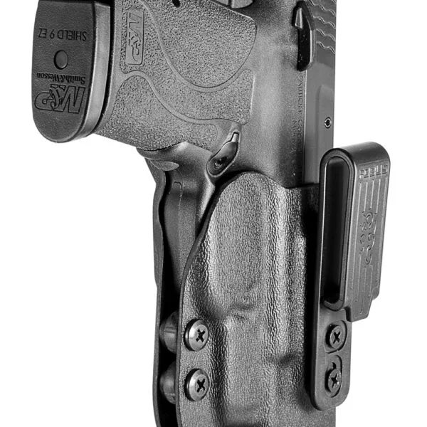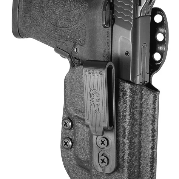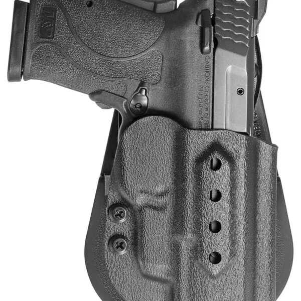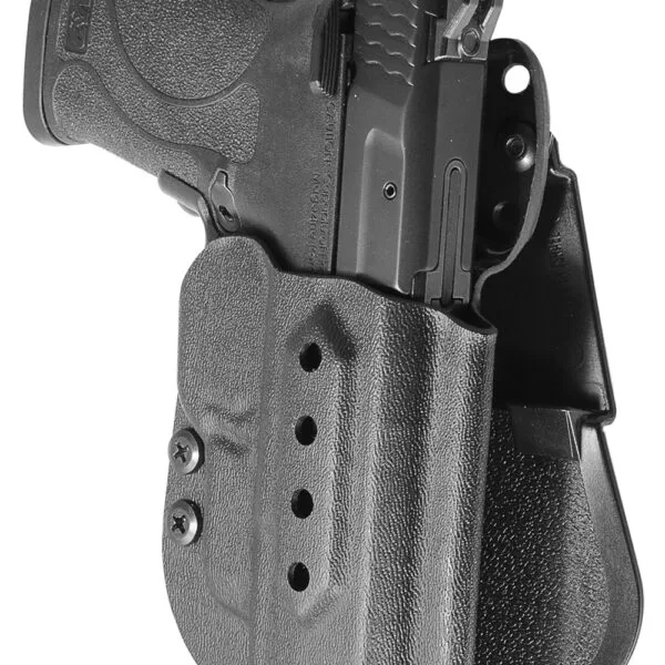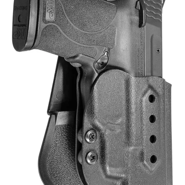 Tighten your belt. Place the holster on your hip and make sure the paddle/belt clip is pushed all the way down on your belt. Draw fast and decisive, in an upwards motion as if you were in a real critical situation. The holster offers an adjustment screw for a more accurate retention pressure and personal preference.