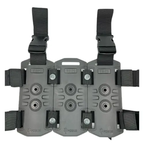 First, tighten your own waist belt. Wrap the TRP vertical straps onto your belt, and buckle both sets of the horizontal straps around your thigh.